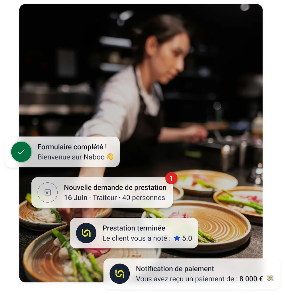 Le référencement sur Naboo est gratuit et sans engagement. Une commission d’apport d’affaires est prélevée sur le montant de vos prestations lors de chaque réservation.